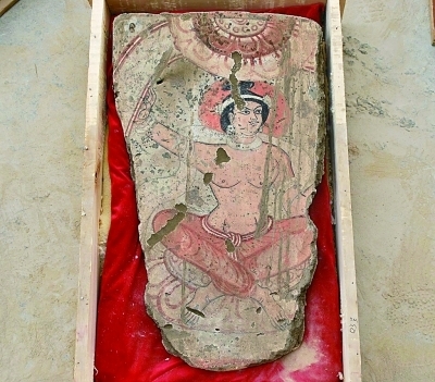 新疆和田警方追回的达玛沟遗址壁画。鲁玉珍/CFP