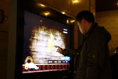 2012年5月初,我馆启动了“成都金沙遗址博物馆藏品信息化建设项目”,开始对文物进行三维扫描和数据采集。经过半年多的工作,一些重要文物已在太阳节期间开始进行三维展示。陈列馆五展厅门口摆放有2台55寸高分辨率多点触摸一体机进行文物三维模型的动态展示,具有良好的交互体验功能。观众可通过自行操作在屏幕上零距离“触摸”文物,还可以任意旋转和放大自由欣赏文物,多角度、高清晰地观看文物的结构、形态、色彩等细节,并配有生动、简洁的文物信息及相关知识的介绍。三维展示在丰富展览形式和内容的同时,也更大程度地满足了观众的求知欲和好奇心,并使博物馆的参观学习变得生动而有趣。这也是国内首次将文物的三维数据运用到数字展陈方向。