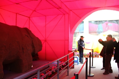 太阳节期间,瑞兽齐聚金沙贺新春。被誉为成都“镇城之宝“的天府石兽在金沙遗址博物馆下沉式广场隆重展出,广场上只见五个犀牛造型的彩色灯组色彩亮丽,形态可爱,而石犀则藏在中央最大的犀牛灯腹中。在这里您可以表达对瑞兽的崇敬和对新一年美好生活的祈愿。