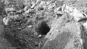 前一天晚上被挖开的盗洞,类似的盗洞在现场随处可见。