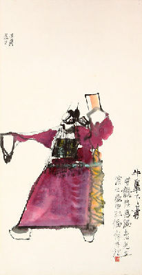 1962年,侯喜瑞出演牛皋时已70岁高龄。然舞台上演起牛皋,依旧眉眼传神,光彩照人,这给戏剧爱好者程十发留下了深刻的印象。在程十分的笔墨挥洒中,牛皋英勇之豪气跃然纸上。阔步之间,不卑不亢的凛然正气表现得酣畅淋漓。