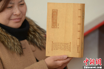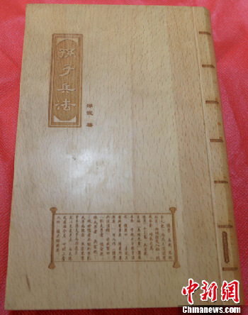 3月11日,《孙子兵法》木雕书亮相湖北保康县。据了解,《孙子兵法》木雕书采用激光微雕新工艺制作,与《战国文物漆器复制品》系列产品等14种商品被湖北省旅游局认定为“灵秀湖北”旅游商品。