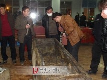 据当时在场的村民回忆,最初挖出来的是一块棺木板,下面是两具棺椁盖板,内外棺木相连。大家意识到这里出现的应该是一处古墓,于是立即停止了地基挖掘等施工,并上报相关部门。