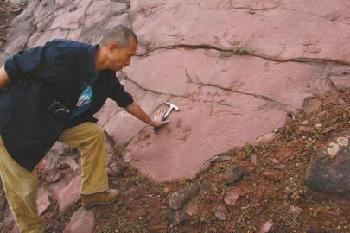 “这里也有,好多!”昭觉县文管所工作人员吉克衣各兴奋地大喊起来,他肯定地说,这就是恐龙足迹。