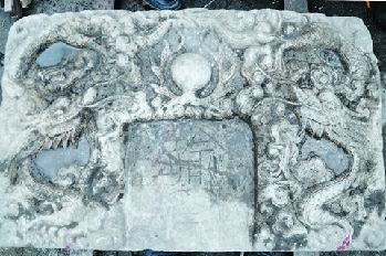 昨天下午,记者在现场注意到,这块碑额上刻有双龙戏珠,中间刻有“谕祭”两字。雕刻的图案活灵活现,十分精美。经过现场测量,这个碑额高53厘米,宽78厘米,厚19厘米。“这个碑额刻的龙有五个爪子,在古代只有皇帝御旨的碑刻龙才能刻五个爪子。”原黎里文保所所长李海珉告诉记者,这是乾隆四十七年(1782)年,周氏后裔根据乾隆皇帝谕祭病故原任工部尚书周元理立的御碑的碑额。李海珉介绍,“周宫傅祠”房屋分六进,原来乾隆祭文御碑立在一进和二进之间的八角亭内,底座是石龟、中间是碑身,碑身刻有乾隆皇帝“谕祭文”,上面有碑额。文革期间,因为“破四旧”,乾隆祭文御碑遭到破坏,石龟的龟头被砸,碑身摔断,而碑额不知去向。“这次我们在‘周宫傅祠’保护修复时,在一进和二进东南角的水泥底下把碑额挖了出来。”李海珉介绍,他自从1992年到黎里文保所工作以来就开始找这块碑额,已经找了21年了,没想到被人铺在路面下当成了垫脚石。“这次‘周宫傅祠’修复让碑额重见天日,我真是兴奋呀!”李海珉开心地表示,一方面是老祖的东西找回来了,另一方面,这些东西就是史物、是历史和文化的传承。