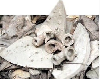 广西博物馆研究员、考古专家郑超雄从事考古研究30余年,获知三岸窑址的消息,郑超雄特意来到现场考察。在一片废品堆里,几个手指粗细,呈90度的管状物让郑超雄颇为兴奋,他一眼就认出,这是瓷烟斗。