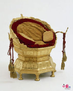 兰吉特•辛格的黄金王座。该王座用饰有花朵和叶子图案的金片装饰,生动体现了旁遮普锡克教统治者兰吉特•辛格大君著名的奢华风范。
