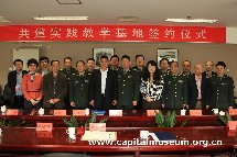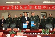 为了推动军校学员素质教育和实现博物馆精神文明建设多元化,同时进一步活跃双方文化生活,装甲兵工程学院刘德刚副院长和首博陈建国副馆长分别代表共建双方,于2013年4月26日在首都博物馆共同签订了《共建实践教学基地协议书》。院、馆双方将在教学、培训、相关领域研究等方面开展共建活动,以期发挥各自优势和特长,互相借鉴、共同进步。