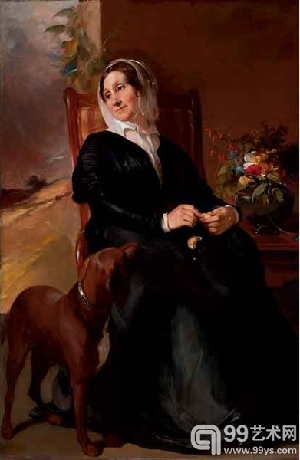 美国画家托马斯·萨利(Thomas Sully)1848年布上油画作品《萨拉·苏利和她的狗肖像画》(Sarah Sully and Her Dog)