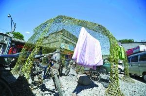 韩建科今年年初由巷子深处搬迁到三角地带继续经营食品饮料生意,他的店面正对着“树亭”。他说,常有些经过这里的老外,比划着让他从店内探出头来,以作为他们拍摄的背景。“只是我这个头儿不高,人长得也不帅,还真不如单照那玩意儿好看。”一旁的老板娘也认为那是件挺漂亮的东西,“每回路过都会上去摸一摸丝网”。她很好奇,为啥日晒雨淋的,上面的漆都还完好无损,“一定是质量很好的特殊材质做的”。