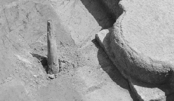 记者看到,露出地面的地砖有灰色、青色和黄色等三种,据专家介绍分别是灰陶砖、青陶砖和黄陶砖,初步鉴定是明清时期的老砖。经初步测量,出土的地砖规格呈正方形,边长36厘米,厚度约2.3厘米。由于长期的挤压,出土的地砖已经基本裂开了,仅剩部分完好的。在地砖和地砖之间,考古专家们发现了一个个“神秘”的木桩,让有着丰富考古经验的省文物考古研究所郝思德研究员也百思不得其解,一时鉴别不出来这是什么东西。记者看到,这些神秘的“木桩”穿过地砖之间的缝隙深深扎入地下,只露出了约20厘米在地面外。露出的部分,顶部削尖,腐败情况较轻,且木桩相互对称,呈正方形分布。“在海南的很多古代建筑中,我们都没有发现过这种扎在地砖缝隙里的木桩,暂时还不能确定这些木桩是什么年代的,有什么用途。”郝思德研究员说。