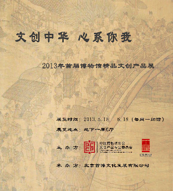 为配合中国博物馆协会文创产品专业委员会的成立,同时迎接5.18国际博物馆日到来,将在首都博物馆地下一层M展厅推出为期1个月的《文创中华 心系你我——2013年首届博物馆精品文创产品展》,届时文创产品专业委员会副主任单位的文创产品集体亮相首博。