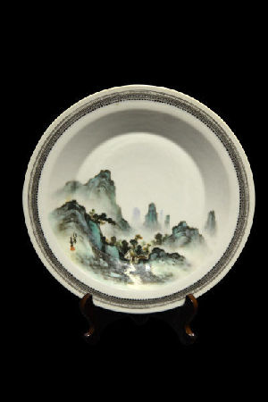 “八友”中人,各具所长,无不有着鲜明独到的艺术个性,正如汪野亭,就以其超凡脱俗的山水瓷绘艺术在“八友”中独树一帜,享誉古今。其以古为宗、以文入境,将传统国画山水的文人神韵完美融入到了瓷绘艺术之中,开创了瓷绘山水全新的艺术境界。其瓷绘作品构图意境深远,设色淡雅清幽自成一家,既不同于古彩的单调、艳俗,又比浅绛彩更富于表现力,以景传情,尽显文人风骨。