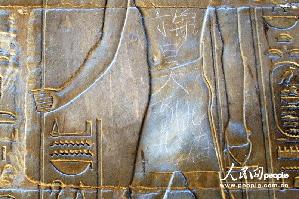 2013年5月6日,埃及卢克索神庙,有中国游客刻字“到此一游”。