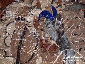2011年11月24日,位于山西省安泽县境内盘秀山顶部祖师庙内,精美的壁画正遭受到游人的涂鸦破坏。
