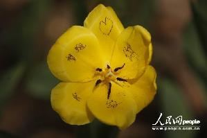 2012年4月8日,西安市兴庆公园。有游人在郁金香花瓣上写字。