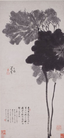 朱耷 1705年作 墨菡萏图 91×43厘米
