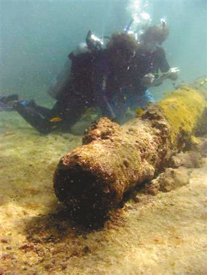 美国印第安纳大学研究人员13日说,在多米尼加卡塔林娜小岛附近水域的水下仅3米处,他们发现了大炮及船锚等残骸,这些残骸据信是基德船长于1699年丢弃的“Quedagh”号商船的。