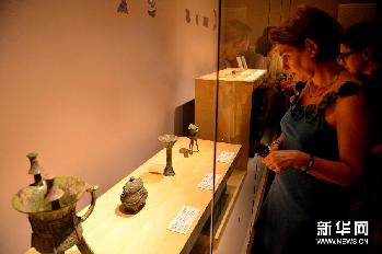 6月20日,在意大利罗马市威尼斯宫,参观者观看文物展。