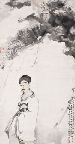 Lot134 傅抱石《松下高士图》 1947年作 纸本立轴 67×33cm