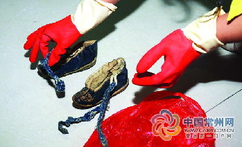 武进邹区刘巷村委施工挖出一个墓葬。第二天,棺木被拆走,部分陪葬品被拿走。昨天从武进文保部门获悉,他们联合警方和村委,已从村民手中收回3枚石质构件和一双绣花鞋,初步判断该墓葬为清代早中期,具有一定的文物价值。