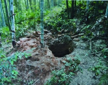 2012年5月31日,有村民上山时,发现竹林里多了几个深浅不一的洞穴。“洞穴大多呈方形,长宽在一米左右,深的有两米,浅的一米左右。”宁国市文物专家确定,在五个洞穴下,都有一个长方形的墓室。墓穴被盗确凿无疑,这让当地人神经一下紧张起来。