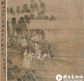 仇珠(明) 虢国夫人游春(早朝)图立轴 设色绢本 92×91cm 著录:《中国古代书画图目》(第十二册)与《中国古代书画鉴定实录》(第四册)