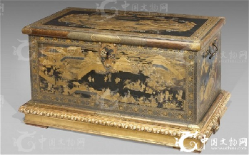 据考证,这件内外均涂饰金漆,并镌刻日本古老神话《源氏物语》的木箱是手工艺大师考密•纳噶斯格(KaomiNagashige)在1640年供职于京都荷兰东印度公司时制作;