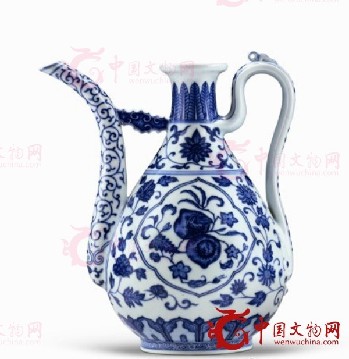 清道光青花枇杷寿桃纹明式执壶