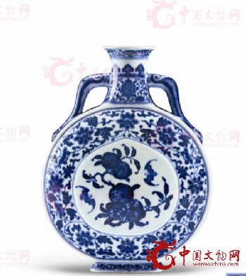 清乾隆青花石榴纹双耳扁瓶