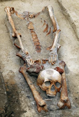 据英国《每日邮报》7月16日报道,考古学家在波兰发现一组中世纪墓群,其中尸体的头骨被砍下摆放于骸骨的两腿之间。据考古学家称,这种割下头颅的行为是16至17世纪流行于古欧洲处理疑似吸血鬼尸体的方法,当时的人们相信这样做能使吸血鬼永不“复活”。