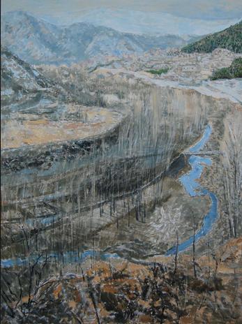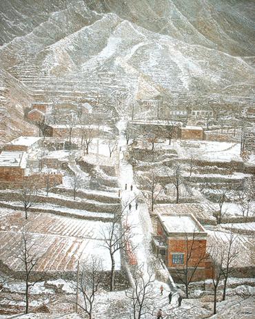 范淼的油画风景一直以燕赵之地的太行山脉为载体,他作品细腻中蕴含情致,气质上体现着对东方文化精神的理解和继承,北方大山大水的自然地貌雄奇而充满现实气息,而这一人文面貌在太行山一带的风景中尽显无疑。自古以来,无数文人画家对这里的风景进行过描摹。范淼对太行山的风貌极为熟悉,满怀深厚的感情,在他看来,虽然他与古人秉持截然不同的绘画工具,但他们在精神上所追求的心灵图景却浑然一体。《溪山鹊鸣》、《山之春》、《山上长城》、《山之家园》、《山之雪》等,单单从这些作品题目中,便可感受到在多年的默默试探之后,范淼对中国式文人情怀的一种体认和感知。他以风景的面貌呈现给人们,与独立的心境和自然的景象为伴。今时今日的范淼,在未来会有更广阔的天地去施展和书写。