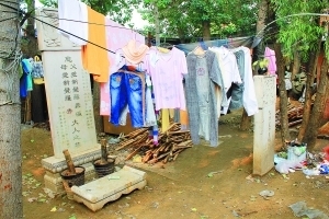 据族人称,这块墓地中埋葬有努尔哈赤的第十一世孙爱新觉罗海观,其人曾官至左都御史,位及一品。而就在目前这四周平房下,还压着很多族人的棺椁。