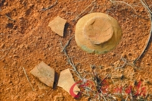 垇顶新石器晚期遗址嵌在表土层的零碎陶片