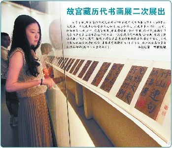 9月4日,故宫博物院武英殿迎来“故宫藏历代书画展”(第七期)的第二次展出。本次展出分为晋唐宋元和明、清3个单元,共展出书画作品118件,绘画涉及人物、山水、花鸟等科目,书法有楷书、行书、草书、隶书等,展品中不乏在书画史上占有重要地位的珍品。“故宫藏历代书画展”共9期,是故宫博物院推出的系列展览,将故宫藏晋唐至明清的书画精品作通史性陈列,为观众提供近距离观摩的机会。本期展览将持续至11月3日。图为观众在欣赏唐代颜真卿的《楷书竹山堂连句册》。
