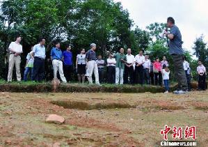考古专家学者在五华狮雄山秦汉遗址发掘现场考察。