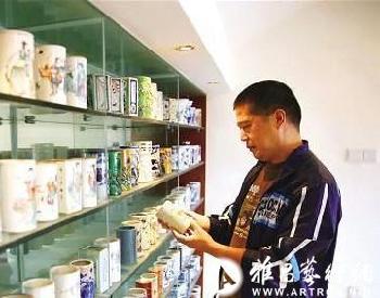 在阚志雄家,一面墙的玻璃柜里摆满了五彩斑斓的陶瓷笔筒。这是他花费近30 余年心血收藏的成果,清花、釉下彩、五彩等各种工艺应有尽有,山水、人物、花鸟等绘画内容丰富多彩,扁形、圆形、方形等形状各式各样。