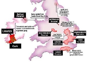 在2012年,杜伦大学的东亚博物馆、菲茨威廉博物馆、剑桥和诺威奇城堡博物馆相继成为盗窃目标。窃贼首先“光顾”了东亚博物馆,打穿墙壁,盗走了一件玉碗和瓷器,估价约为200万英镑。没过多久,价值1800万英镑的中国玉器、瓷器又从菲茨威廉博物馆消失无踪。同月,巴斯东亚艺术博物馆也成为窃贼目标,但行窃并不成功。