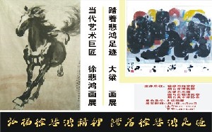 此次画展的主题为“踏着悲鸿足迹”,徐悲鸿纪念馆自2006年开始全国巡展,先后在石家庄、贵阳、深圳、沈阳、西安、苏州、无锡等地举办。此次展出作品数量虽不是太多,但徐悲鸿大师的代表作《大奔马》,以及因被蒋介石点题赠送“美国飞虎队”队长陈纳德而产生了很多离奇故事的《灵鹫图》,还有水墨淋漓、用笔轻快,最大限度地发挥国画用纸技法、笔墨概括凝练的《漓江春雨图》等名画均悉数亮相,另及著名画家大梁的“五笔画马法”系列作品,将给参观者带来“精典盛宴”。