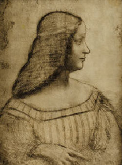 这幅《伊莎贝拉·黛丝恬肖像》约作于16世纪,是在瑞士的一位私人藏家手中被发现的,经权威专家鉴定,系出自这位文艺复兴时期的博学家之手。