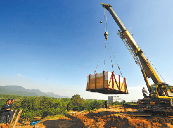 昨天整体搬迁的是一号窑。关于如何搬迁,专家动足了脑子。在考古野外发掘结束后,为了古窑的“搬家”准备工作就花了1个多月。专家们首先在考古现场就地清理古窑,通过除菌、加固、防腐,最后用特殊发泡材料将古窑保护凝固在其中,再在外部用大木箱包装起来,最后用钢架固定外部保护。“这是目前我市最大最重的文物了”,王力军打了个比方:“好像给鸡蛋穿上盔甲,在盔甲的保护中移动这个鸡蛋。”最后这个“盔甲”木箱长4米,宽3米,高1.6米,重约15吨。
