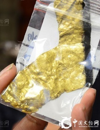 2013年10月8日,比利时考古学家在的的喀喀湖(秘鲁南部与玻利维亚西部交界处湖泊,南美最大湖泊)发现的金片、陶器,其时间可追溯至大约1500年前。法新社图片