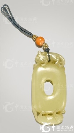 图为中国近代民国时期和田黄玉吊坠,长2.5英寸(约为6.4厘米),温润细腻且光泽鲜亮,拍前估价为7百至9百美元(约合人民币4300至5500元)。该藏品的玉环两端镂空雕刻有辟邪神兽,巧妙利用了玉石本身的俏色,同时系有珊瑚珠装饰吊穗,引发了全场激烈竞夺,最终以5万美元(约合人民币31万元)的高价成交。图片来源:邦瀚斯。