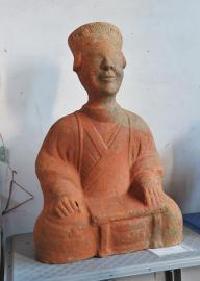 在考古现场,一个造型奇特的陶俑吸引了记者的视线。这个跪坐俑虽然缺少头部,但身体保持完整,能看到她的双手在拉裤子。发掘领队刘化石介绍,这种造型的陶俑还是首次发现。