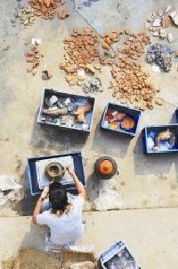 瓦店村遗址自8月下旬开始发掘,探方中分布着灰坑、灰沟、柱洞等遗迹。在探方中有一些特别标识了白边的长方形坑,一共有11个,是此次发掘中最奇特的。省文物考古研究院工作人员冉宏林介绍,发掘时,这些坑中都放有两个小陶罐,陶罐上面有盖子,没有盖子的都用瓦片遮盖住罐口。在南北向长方形坑中,小陶罐摆放在两个角落;在东西向长方形坑中,小陶罐摆放在两边的壁龛内。专家推测,这里可能是烧制砖瓦时举行仪式的地方。