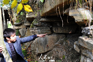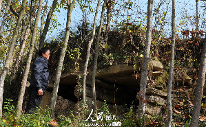 11月14日一村民在看宁强县胡家坝镇拍摄的宁强羌人双室墓地。