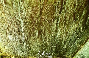 这是在宁强县青木川镇南坝村拍摄的清代古羌人石室墓顶部石刻。