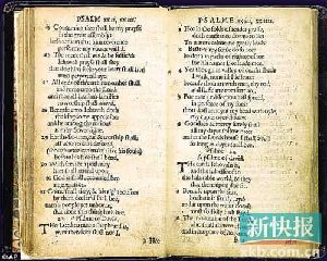 据英国《每日邮报》消息,美国纽约苏富比拍卖行26日成功拍卖了美国历史上的第一本印刷书籍——《海湾圣诗》,号称史上最贵书籍,价格近1420万美元。