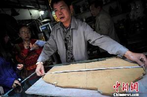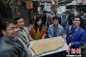 12月1日,广西骆越文化研究会在南宁向广西隆安文物部门移交一块有数千年历史的“大石铲”。据介绍,这块长77厘米、宽41厘米,厚2厘米的“大石铲”近期在广西隆安乔建镇被农民发现,广西骆越文化研究会会长谢寿球判断其不存在造假的痕迹,系目前国内发现的最大石铲,约为6000年前祭祀所用。