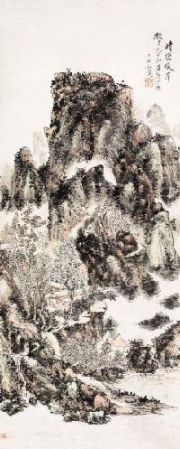《晴峦暖翠》创作于1935年黄宾虹七十二岁之际,时画家任上海博物馆理事及暨南大学教授,是年初夏,应广西省政府邀请,由上海经香港再赴南宁,担任“全省中等学校教职员暑期讲习班”讲师,其间与港中名画家李凤坡、张谷雏、黄般若及蔡哲夫等同游九龙半岛,商榷绘事,于绘画理论有诸多思考,皆体现在其作品中。